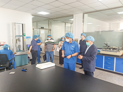 2020年6月3日下午,中紡院總經理、黨委副書記姜俊華,總會計師劉全喜,相關職能部門負責人員到東綸公司調研指導工作。東綸公司總經理張孝南及全體領導班子成員參加調研。 調研組一行實地考察了東綸公司各生產車