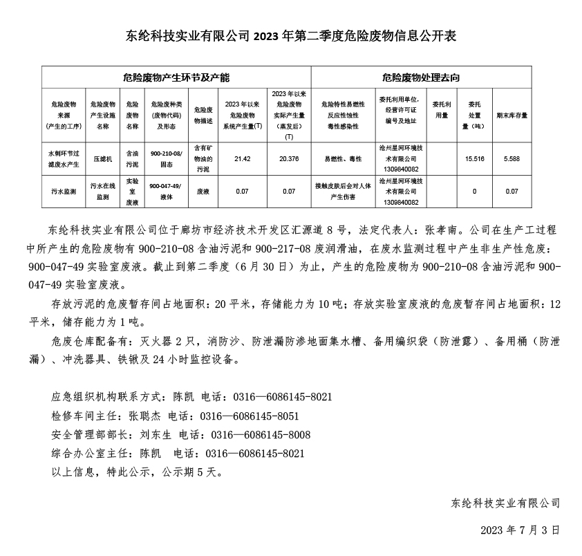 公司在生產工過程中所產生的危險廢物有900-210-08含油污泥和900-217-08廢潤滑油,